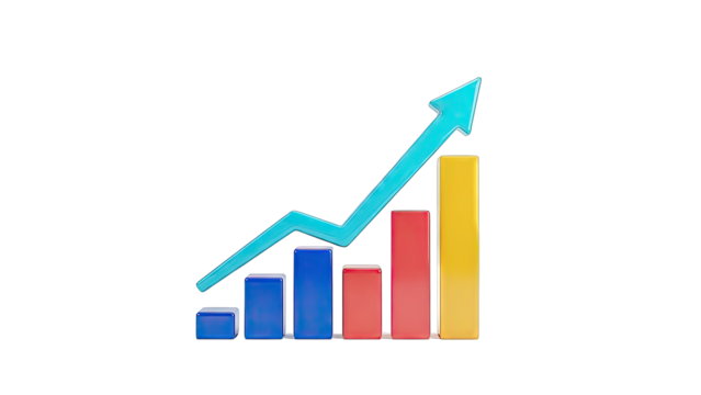 Simple Blue Bar Chart with Upward Arrow on Black Background graph data isolated on a transparent background