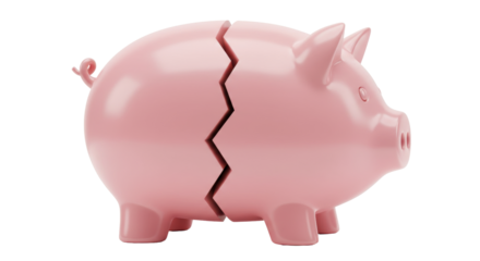 Red arrow breaking and falling down, symbolizing financial crash, economic recession, market crisis, and business failure on transparent background
