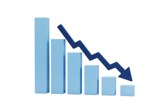 Red arrow moving downward showing financial decline, economy crisis, stock market fall, and business loss