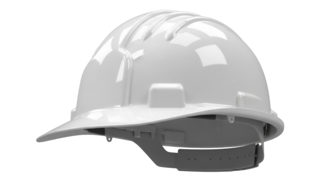 Shiny white hard hat PNG isolated on transparent background, construction safety helmet for industrial work and personal protection