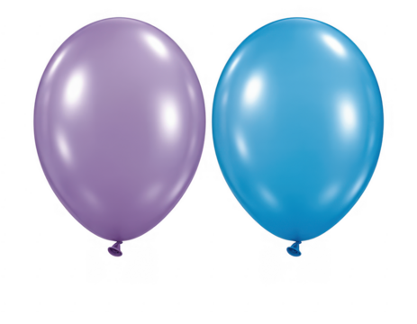 Purple and blue balloons side by side party celebration isolated on a transparent background
