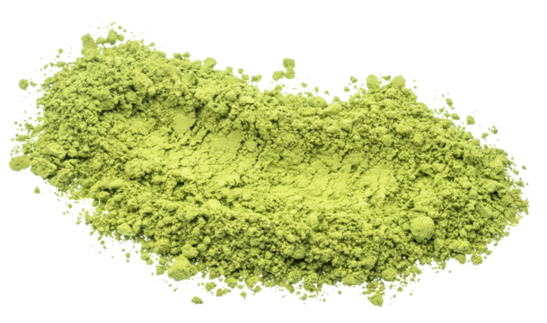 Matcha tea, finely ground powder of green tea on white background. File contains clipping path.