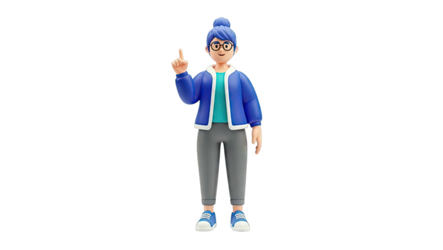 A cute AI robot character pointing with his metallic finger isolated on transparent background