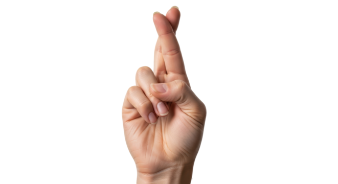 Transparent PNG of Hand with Fingers Crossed,  A Close-up of a Fair-Skinned Hand Showing Fingers Crossed Gesture on Transparent Background, Perfect for Design Projects, Websites, and Apps.