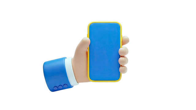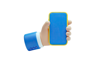 Hand holding a phone with a blank screen against a black background