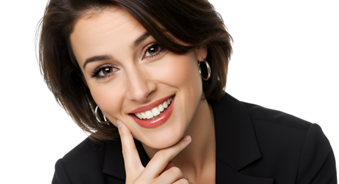 Young businesswoman thinking with finger on chin for professional portrait and corporate branding, isolated on white Isolated On Transparent Background