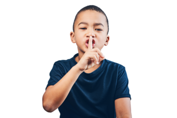 Woman with finger to lips in portrait, secret or silence with mystery isolated on transparent, png background. Emoji, young female model with keep quiet gesture and privacy with confidential signal