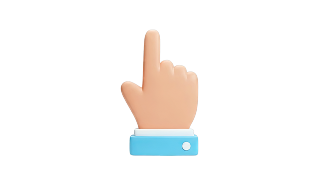 Hand pointing with finger in 3D illustration with warm glow and soft lighting on white background for web icon