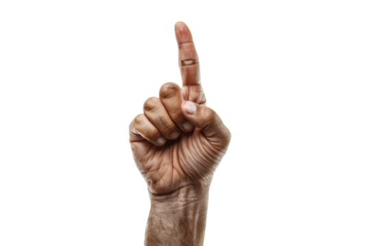 Ai generated image of a pale hand extends, index finger pointing, isolated on transparent background