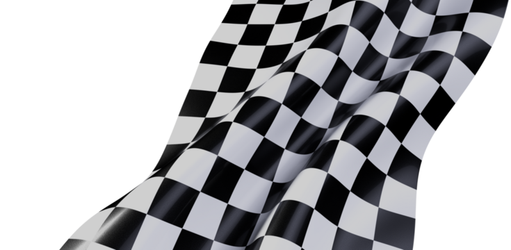 Black and white checkered flag waving on transparent background