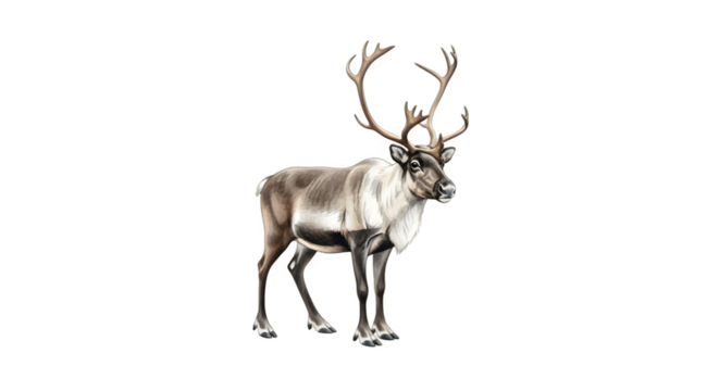 Majestic white arctic reindeer animal, isolated for Christmas or winter themes. This caribou stands proud against transparent background, perfect for holiday snow designs