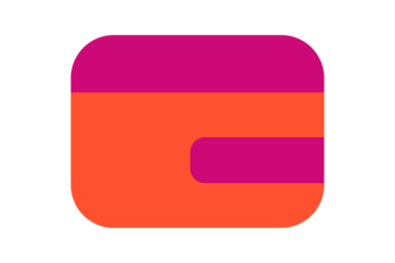 Wallet Icon - Digital finance wallet icon in Orange and Magenta for payment processing, banking, and cryptocurrency storage in a flat style for fintech apps, isolated on transparent background.