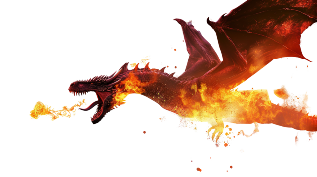 a dragon breathing fire isolated on white background,PNG AI GENERATED