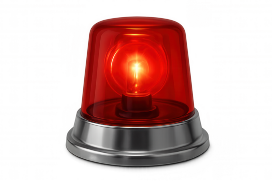Emergency light spinning, casting red warning glow against transparent backdrop, signaling urgent hazard scenario