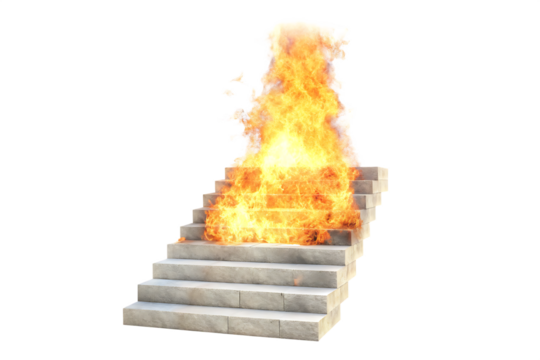 stone steps engulfed in flames symbolizing isolated on white background PNG, AI GENERATED