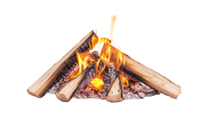 Campfire gathering campsite firewood flames forest environment view relaxation concept isolated on transparent background