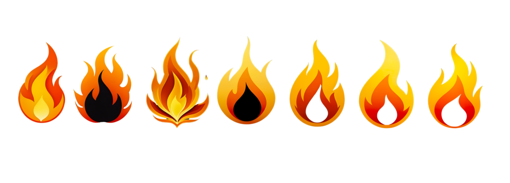 Minimalist fire flame illustration on transparent background