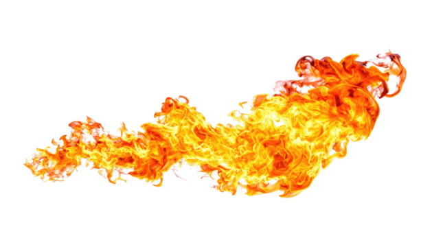 Fiery flame erupting and flowing with brilliant shades of orange and red