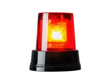 Red emergency flashing light siren beacon warning, signaling alert, incident attention on transparent background