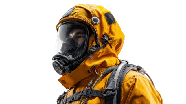 Side view of firefighting suit showing protective layers background isolated on a Transparent background, PNG file.