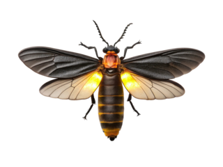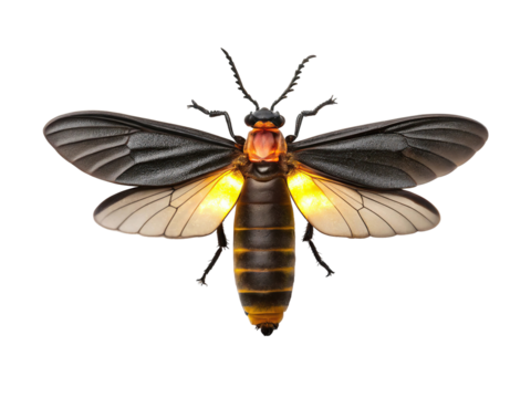 Dark colored firefly insect glowing light bug bioluminescent beetle night wildlife macro photography nature creature isolated on white background