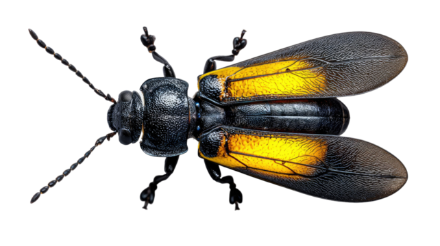 Glowing firefly PNG isolated on transparent background, bioluminescent insect with wings for nature and summer designs