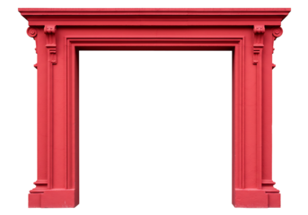 Red fireplace mantelpiece with columns architectural detail interior design element decor classical style