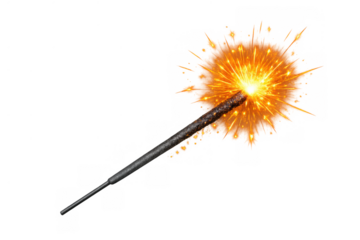 Sparkler burning bright, showering sparks, celebrating holidays and new year's eve festivities, transparent background