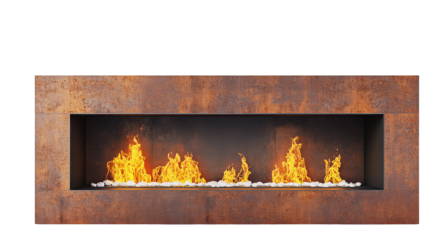 Modern fireplace creating warmth, cozy atmosphere on transparent background