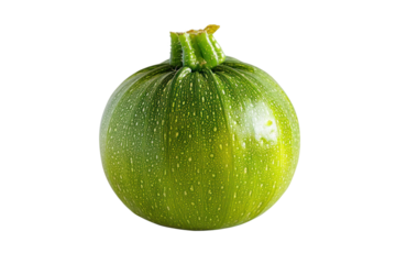 Fresh green round courgette isolated on white background Realistic daytime first person perspective