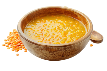 Isolated yellow lentil soup on white isolated on white background Real daytime first person perspective