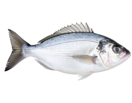 A pristine, silvery fish with distinct fins and scales, ready for culinary preparation.