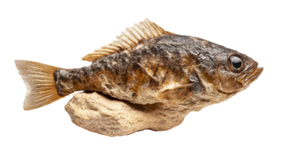 Full view of a golden fish isolated on transparent background, showcasing its scales, fins, and streamlined body shape in a clear and detailed image