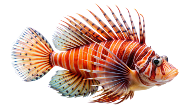 Lionfish with Striking Red and White Stripes, Isolated on Transparent Background