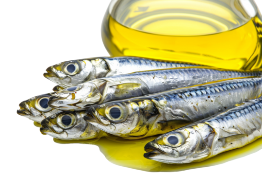 Culinary Delight: Sardines and Olive Oil Isolated On White Background
