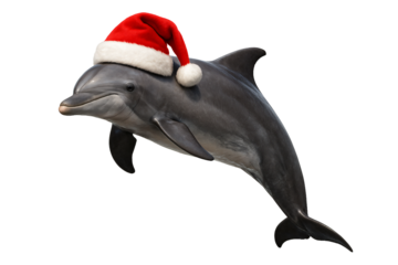 Dolphin wearing a Santa hat. Christmas designs. Holiday cards. Winter projects.