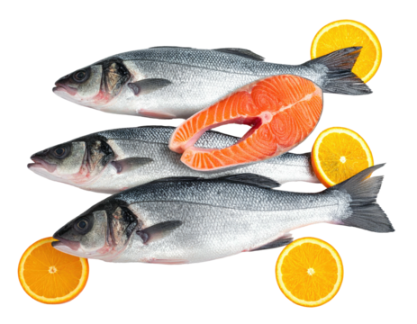 Grilled fishes with lemon slices and chili peppers  culinary delight isolated on transparent background