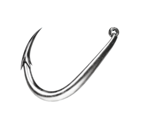 Close-Up of a Steel Fishing Hook Isolated  on transparent background