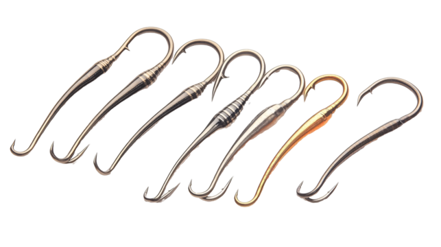 Fishing hook catching fish or opportunities, essential equipment for angling and sport recreation, transparent background
