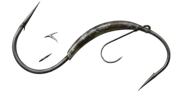 Fishing Hook Close-up: A macro shot highlights the sharp details of a fishing hook, ideal for illustrating angling techniques or equipment.