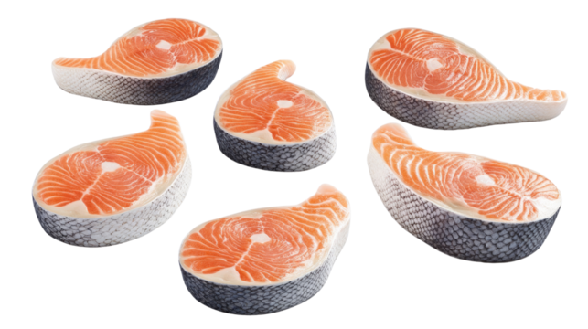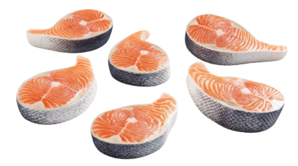 Fresh salmon fillets displayed on a clean surface, showcasing vibrant orange color and intricate texture, perfect for culinary use,cut out