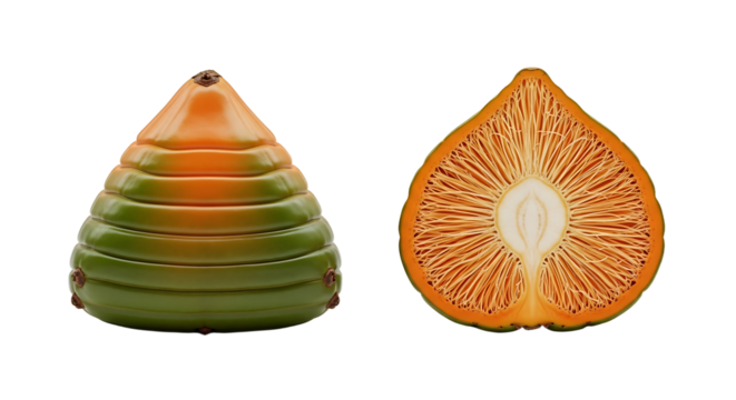 Fishtail Palm Fruit Whole and CrossSection Showing Fibrous Interior.