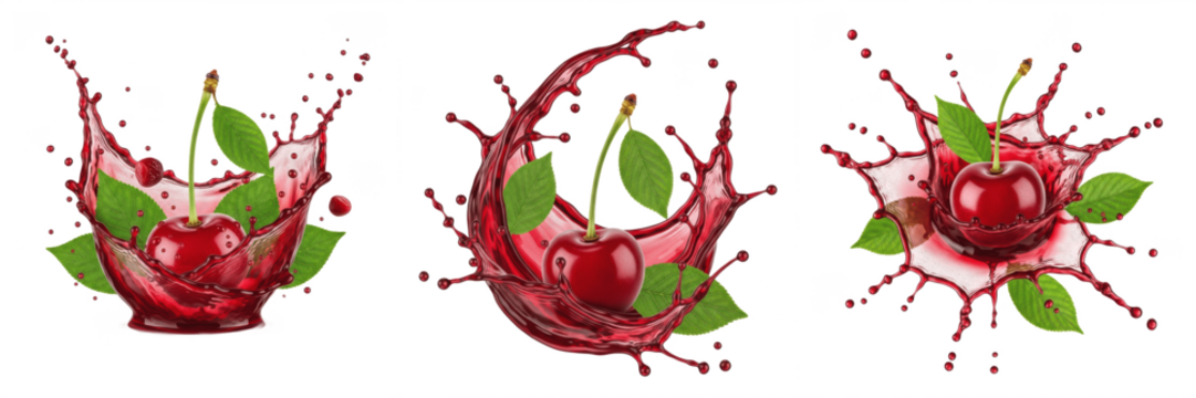 Cherry fruit Prunus avium Prunus cerasus, cherry with juice splash, sweet cherry sour cherry bing cherry rainier cherry cerise kirsche guinda oil paint