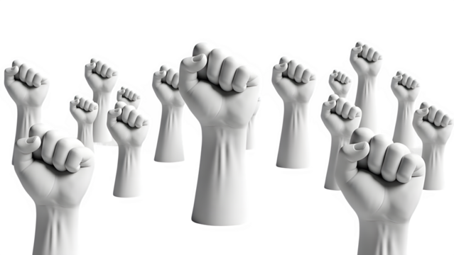 Close-up shot of a clenched fist against a clean white background, showing skin texture.