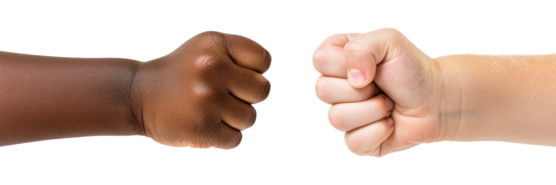 Hands collaborative fist bump on transparent background