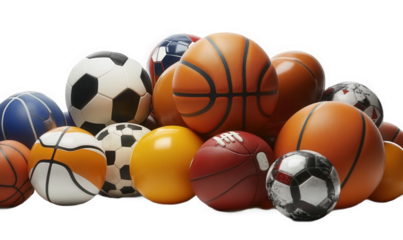 Digital png photo of diverse sports people with dumbell and balls on transparent background