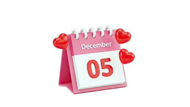 Calendar with Hearts Showing December 5th