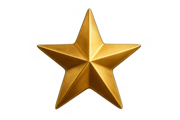 Golden five-pointed star symbol representing success, award, achievement, rating, and quality on transparent background