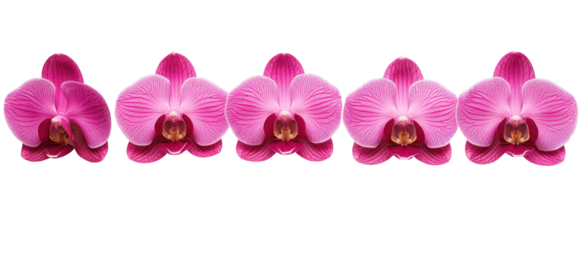 Five pink orchid blossoms isolated on transparent background