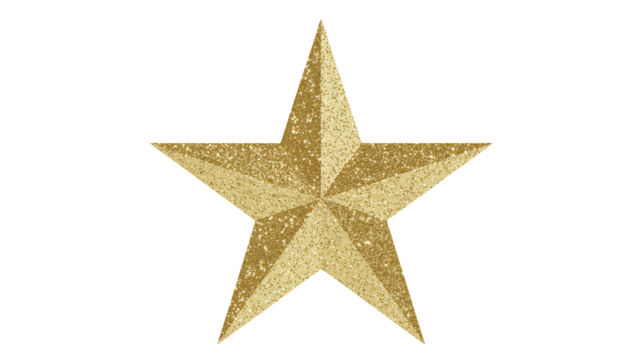 Elaborate five pointed golden star with engraved detailing shines on transparent background